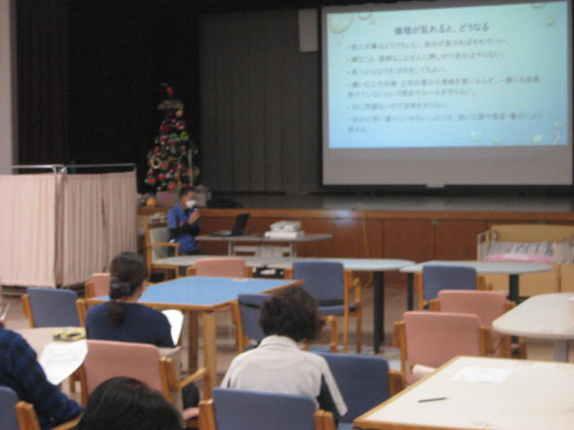 月別アーカイブ: 2025年12月 R7.12.20 レク体験会を行ないました 2025年12月20日 転生園デイサービスの利用者様へマッサージ体験として美令和会の皆様によるレク体験を行ないました。利用者様へとても気持ちのいいマッサージをしていただき、美令和会の皆様、誠にありがとうございました。 R7.12.10 職員研修会を開催しました 2025年12月10日 研修内容: 倫理及び法令遵守/ハラスメント(コンプライアンス)について 施設長より説明がありました。全職員が本研修の意義を理解し今後も継続して 知識を高めていきましょう! 今年最後の研修会でしたが、職員・入居者・利用者とも健康に留意し、 良い年末年始を迎えましょう!