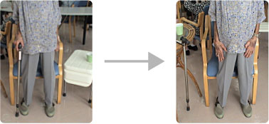 左足関節骨折後遺症のため、歩行に不安があり、常に杖がないと不安で、短い距離の移動さえできない状態でした。